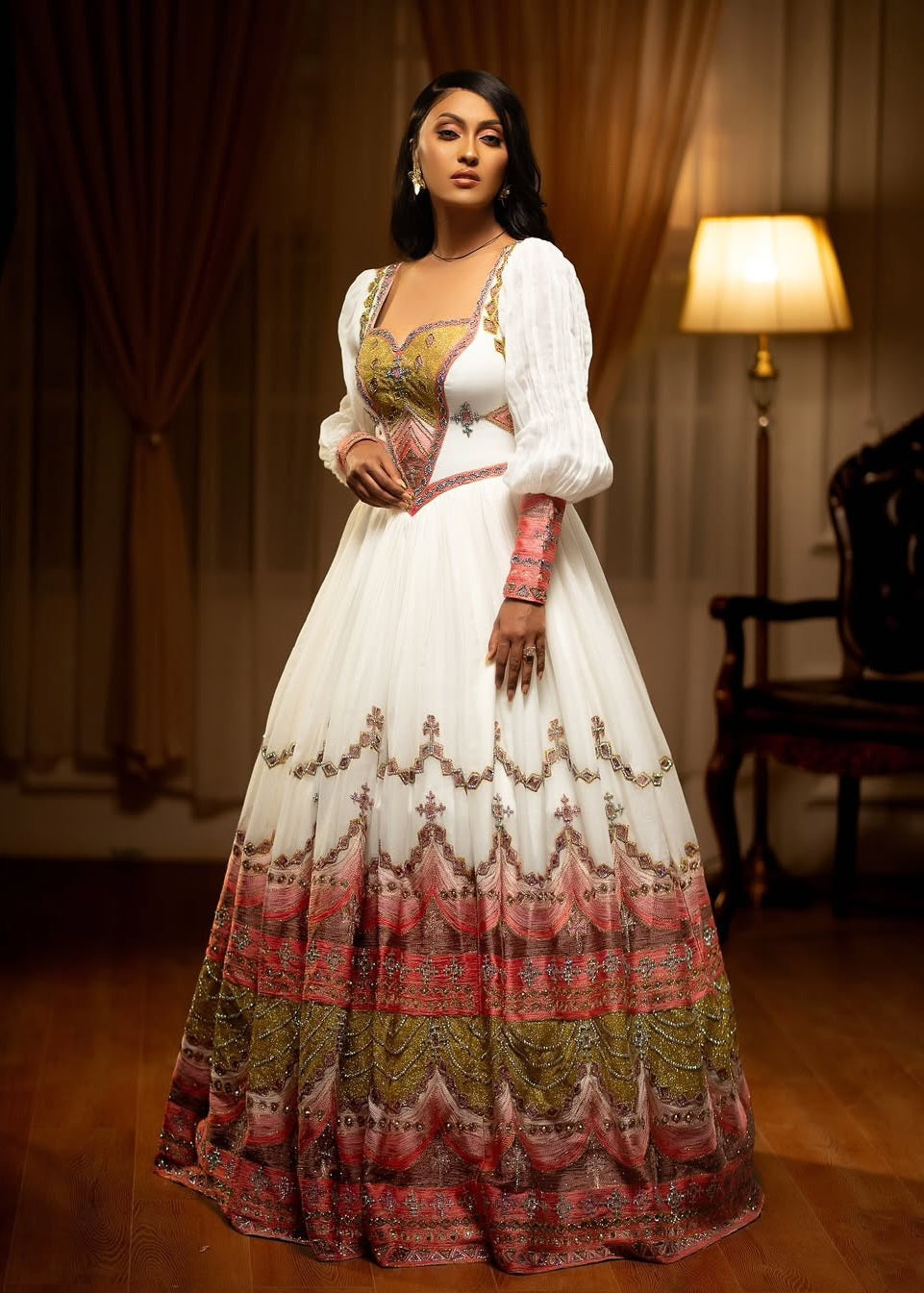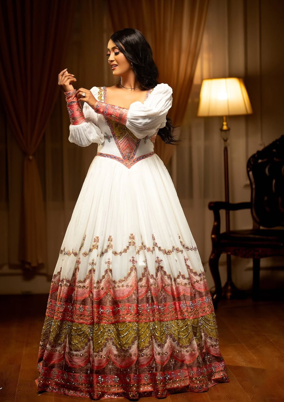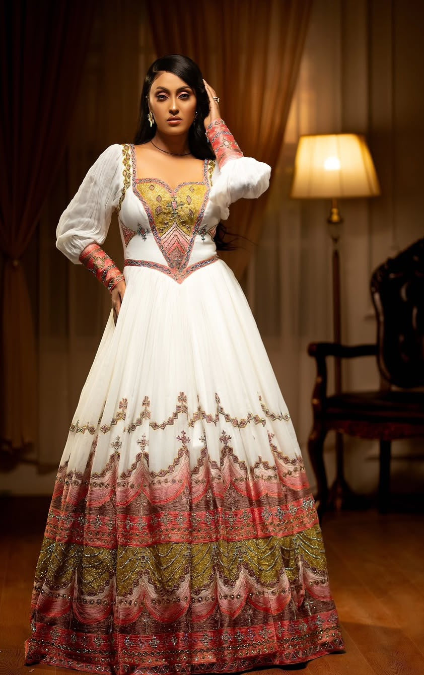 ለኢትዮጵያ ሠርግ የሚሆን ነጭና ቀይ የሙሽራ ሐበሻ ልብስ