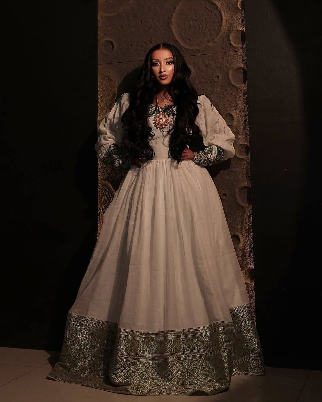 አረንጓዴ የኢትዮጵያ ልብስ | ለሠርግ እና ለቤተ ክርስቲያን የሚያምር ልብስ