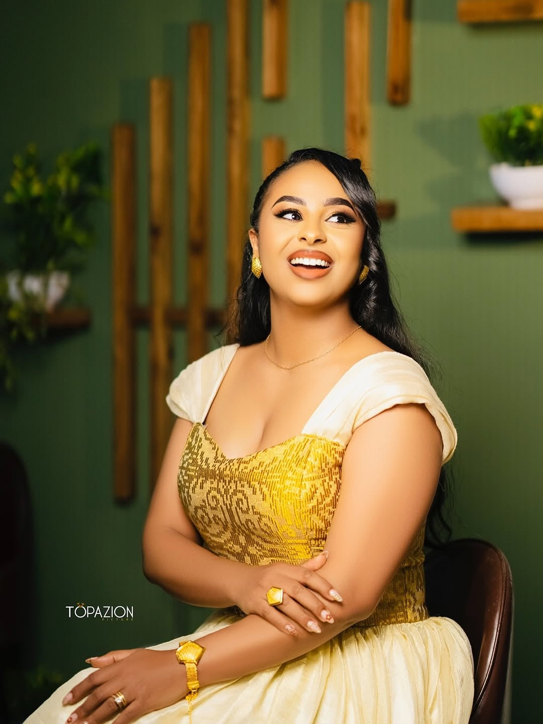 Material and Craftsmanship: Each Habesha Kemis is constructed using high-quality, breathable fabric with a beautiful drape. The yellow and gold accents are often created using metallic or rich-hued threads, giving the gowns a celebratory shimmer perfect for a grand event.