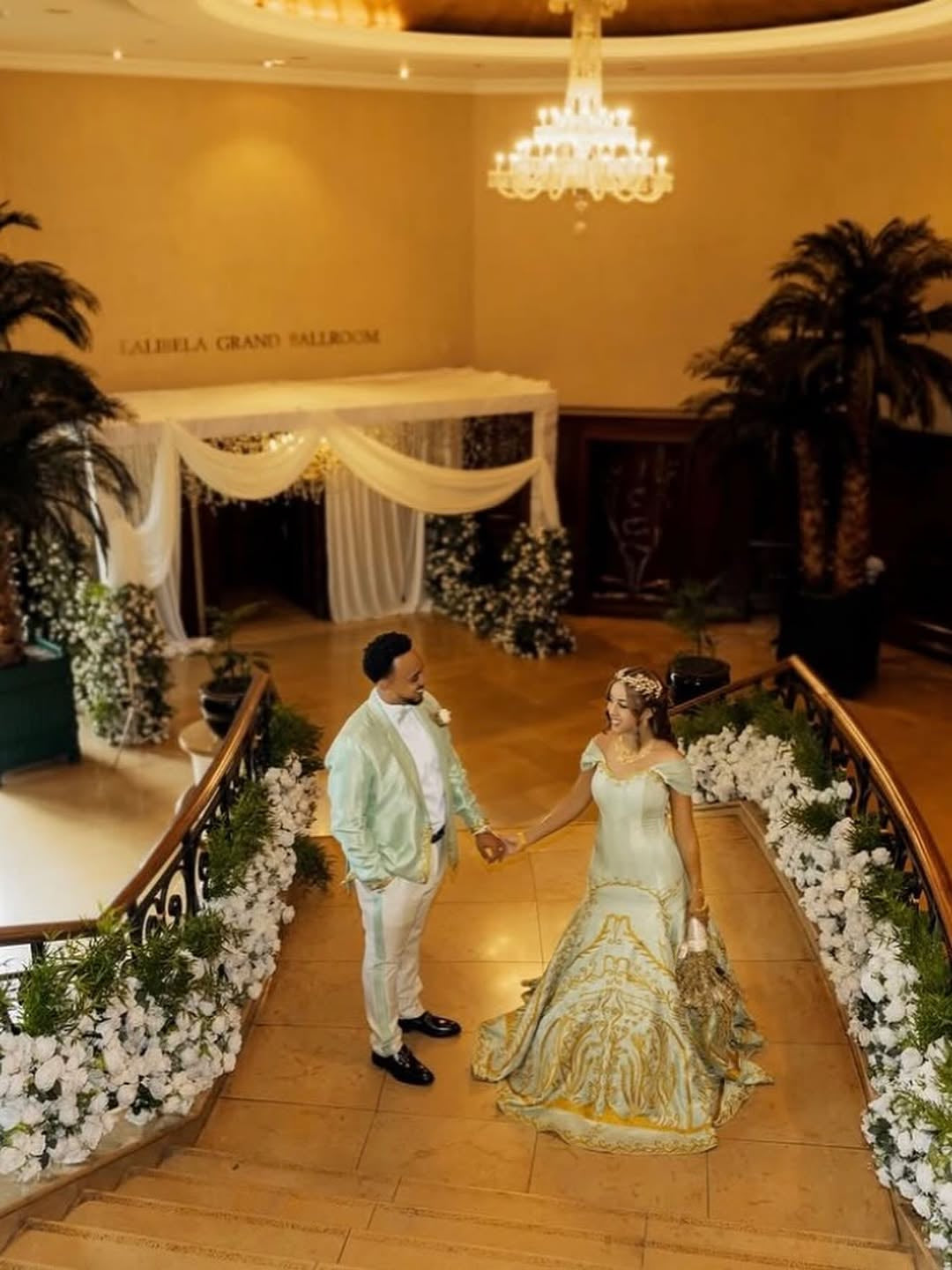 Matching Tibeb Embroidery: Unified patterns for a cohesive bride & groom look