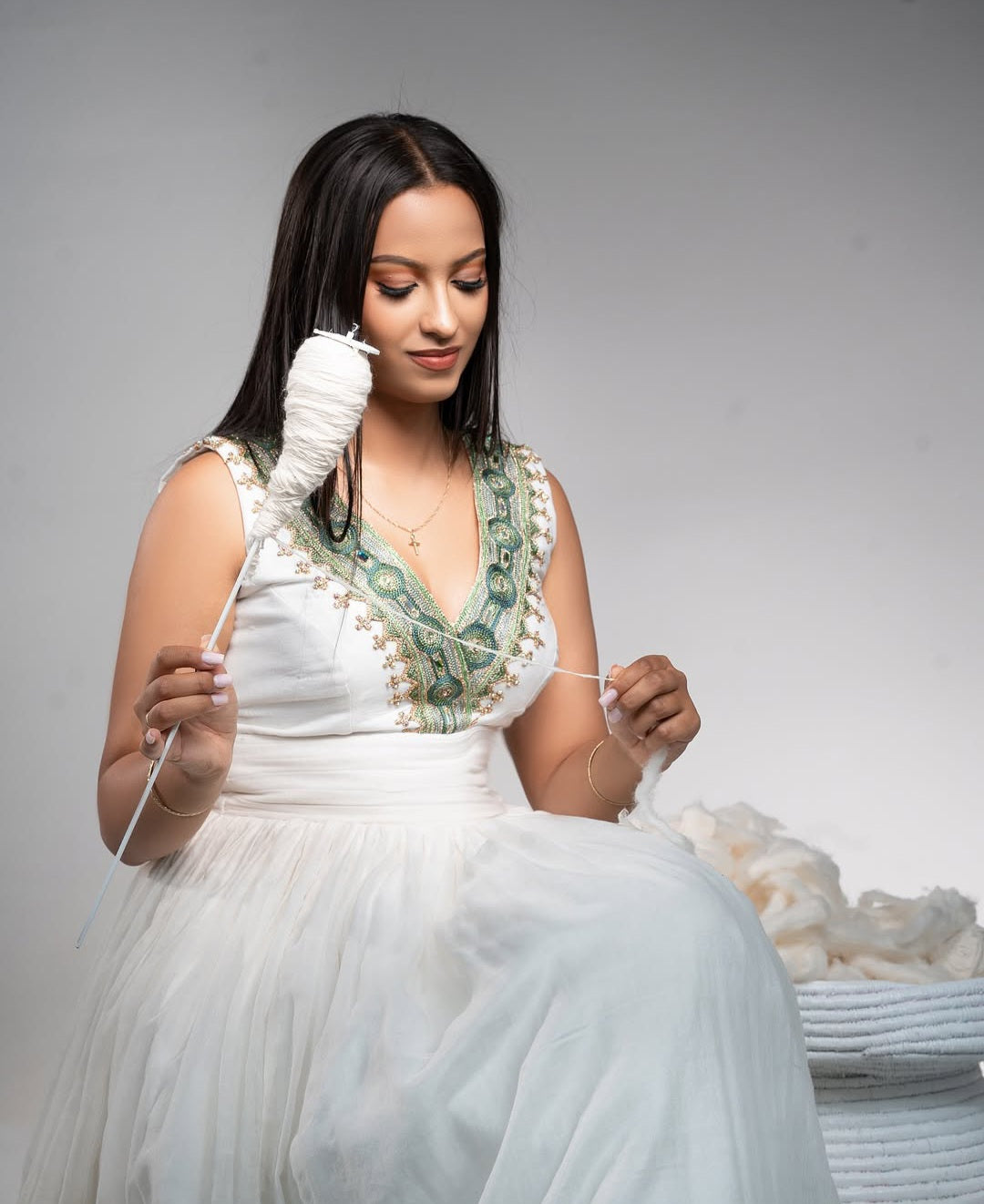 Serene Habesha Kemis with Green Tibeb – Modern Ethiopian Traditional Dress